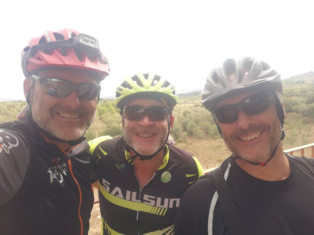 Hoy es un día especial y arranca de la mejor manera. La espalda de Antonio se levanta con pocas molestias. Algo bueno para la maratoniana etapa que nos espera. El recorrido de hoy no tiene nada que ver con todos los kilómetros que llevan nuestras piernas. Hoy nos toca pedalear por La Vía Verde de los Ojos Negros. Y para los que ya hemos hecho otras Vías Verdes, este recorrido es especial dentro de El Camino del Cid. De hecho, la mayor parte de la ruta la vamos a hacer alejados del entramado de kilómetros que tiene organizado el Consorcio del Camino del Cid. Por decirlo de otra forma, considero que la ruta de hoy es un regalo para nuestras piernas y, sobre todo, para nuestros ojos. Espero que, cuando terminemos el día, Ricardo y Antonio sean de la misma opinión.